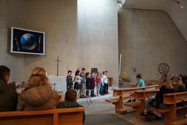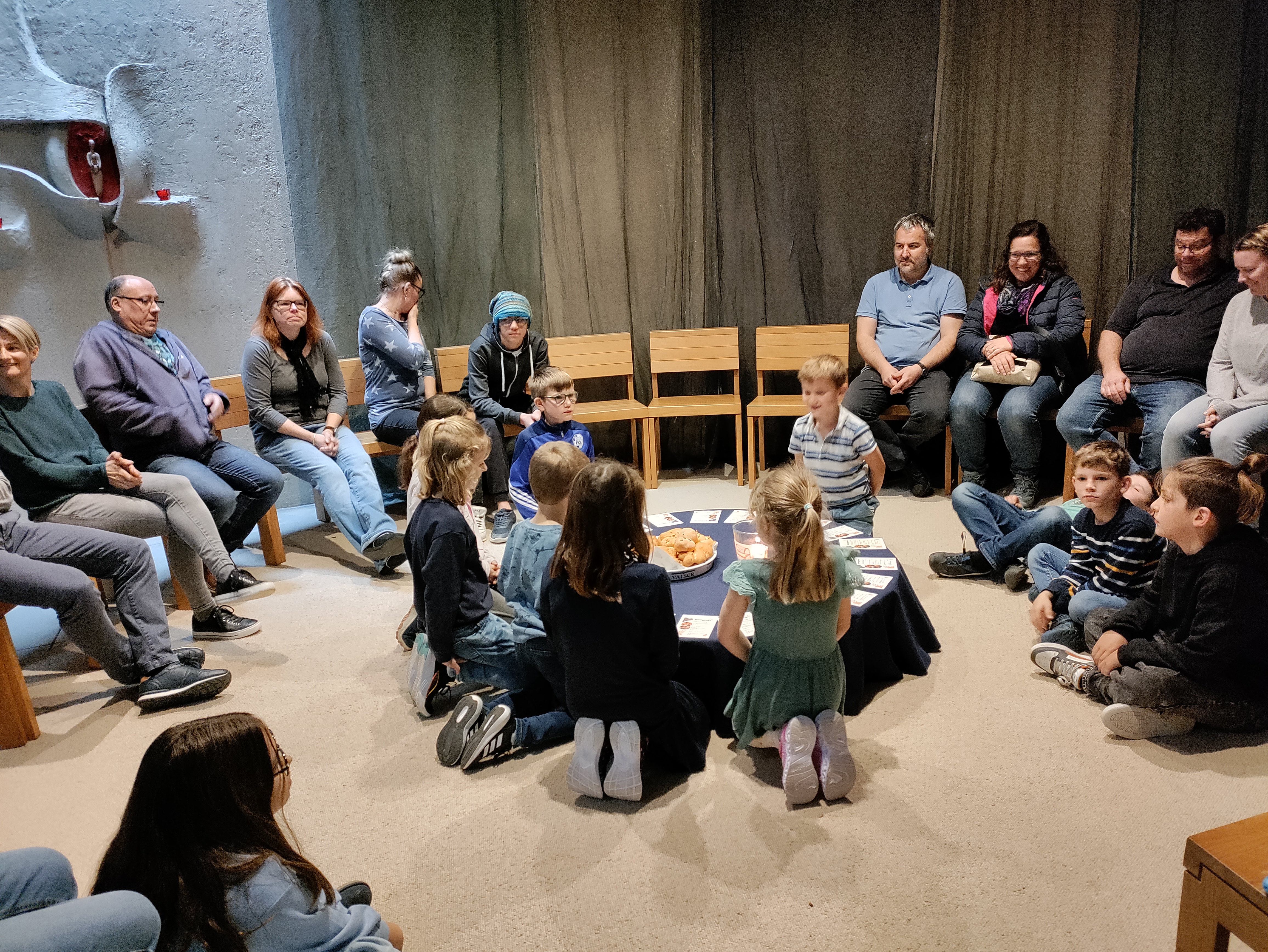 Am letzten Januar Sonntag trafen sich 20 Nebiker Familien mit ihren Kindern, um gemeinsam einen kreativen und besinnlichen Morgen zu erleben. Im kreativen Teil standen zehn Ateliers zur Auswahl. Passend zum Thema „Angst und Mut“ konnte viel Spannendes, Kreatives und besinnliches erlebt werden. Kurz vor dem Mittag trafen sich dann alle Familien in der Kirche zu einem Gottesdienst. Sie hörten, dass Angst zum Leben gehört und feierten, dass Jesus alle durchs Leben begleitet. Den Abschluss bildeten leckere Hot Dogs, die allen vorzüglich mundeten. Während die Kinder im Pfarreizentrum spielten, genossen die Eltern den Austausch untereinander. Herzlichen Dank allen, die zum guten Gelingen dieser Kirche Kunterbunt beigetragen haben!